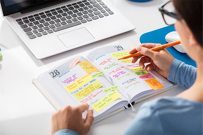 Hold yourself accountable by scheduling your study hours on a calendar. This will also help you avoid scheduling anything else during that time. Some students also find it helpful and gratifying to create a spreadsheet to log their study time and the material they studied. This practice can provide a sense of pride and accomplishment when finals are complete. It’s also great practice for the future when you will be billing clients.